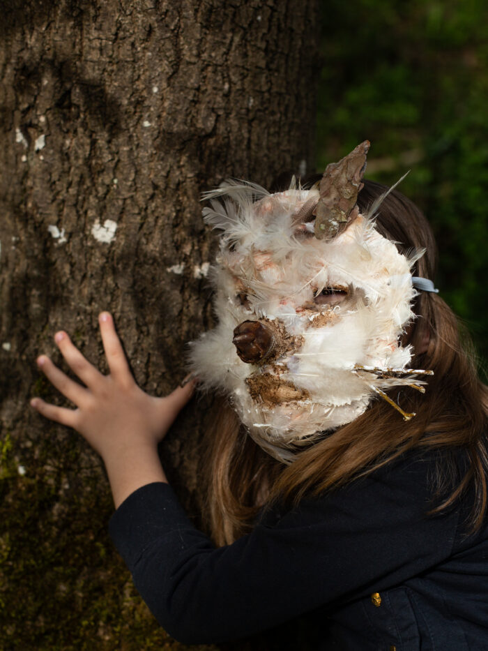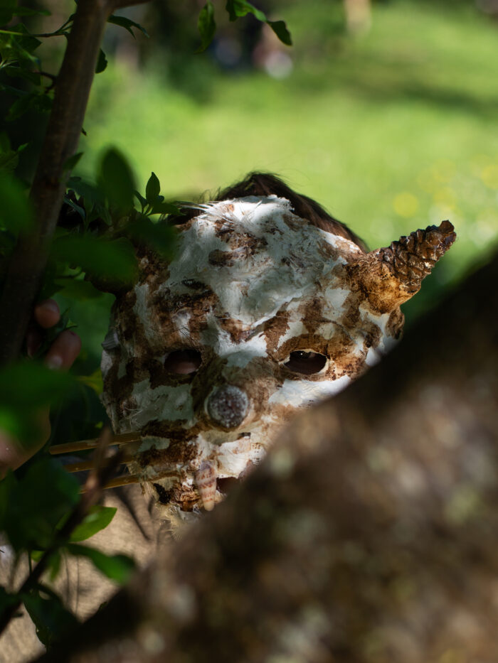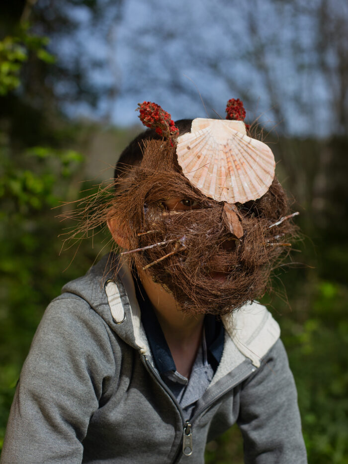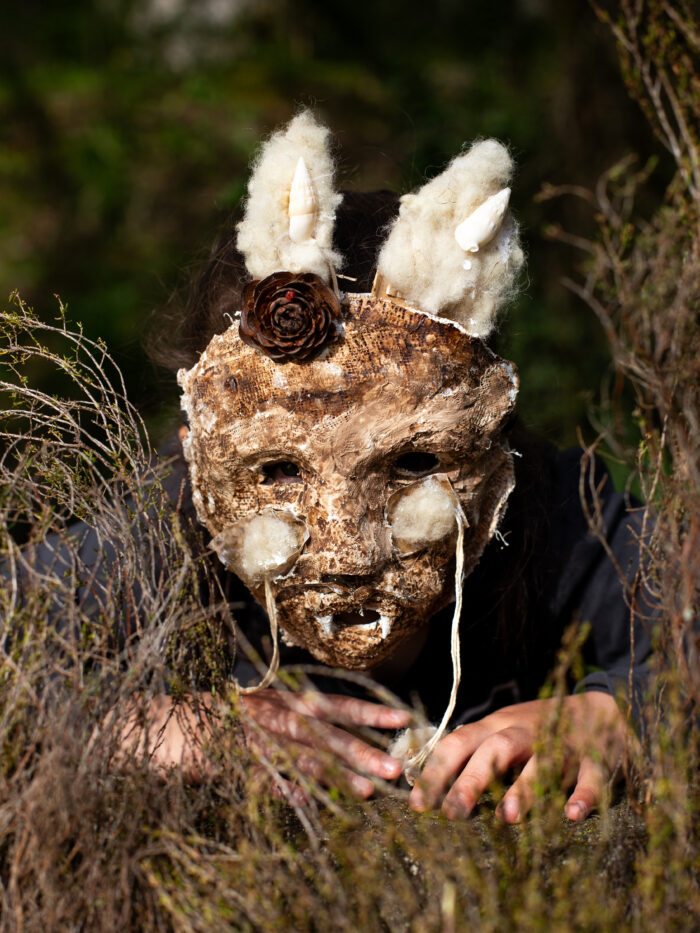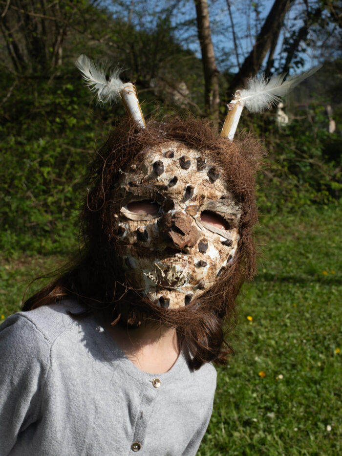 Sous la forme de sculptures à porter, nous avons construit des métamorphoses de nos corps d’humains, des sortes d’hybridations avec les autres règnes du vivant.