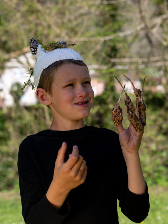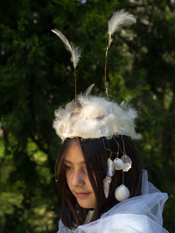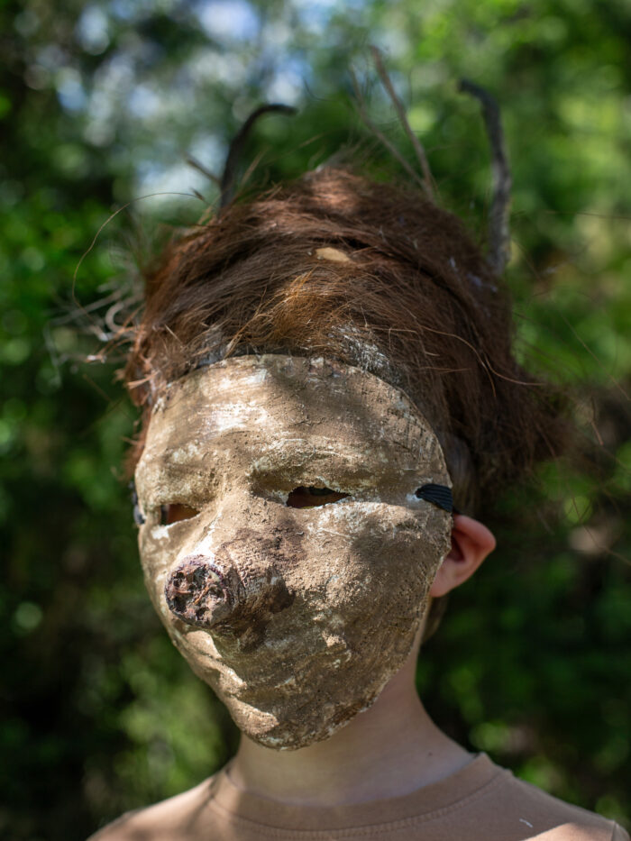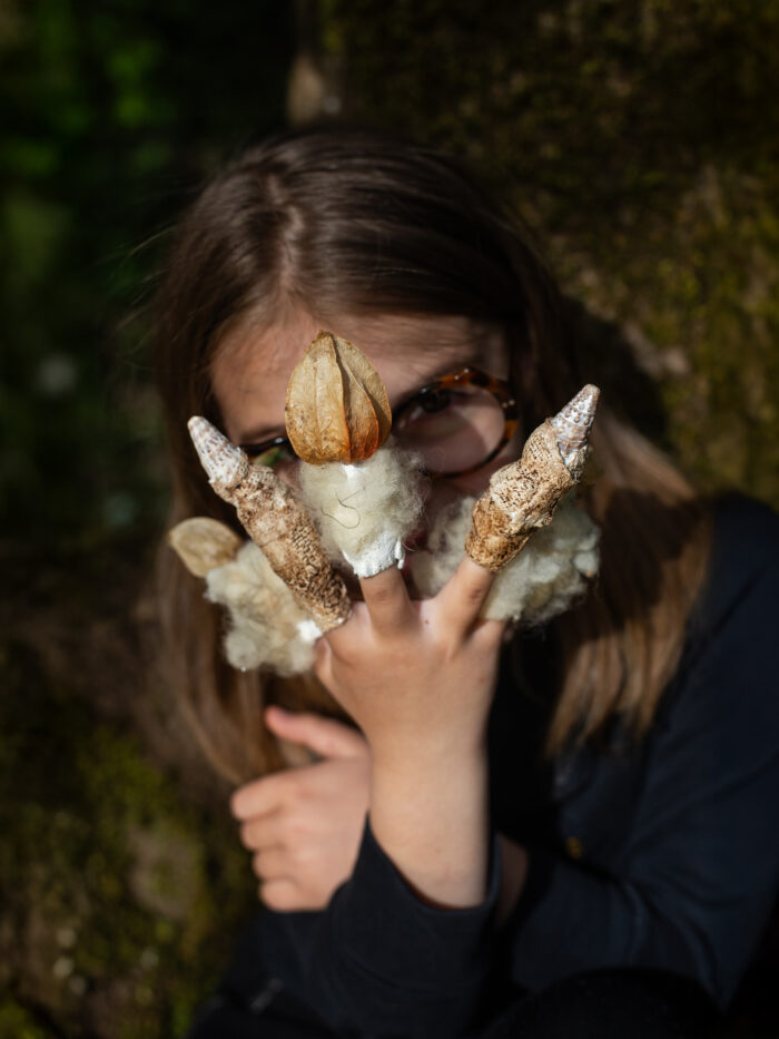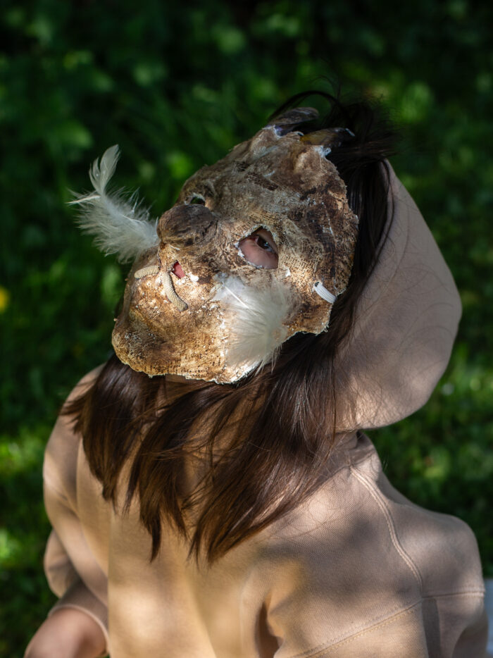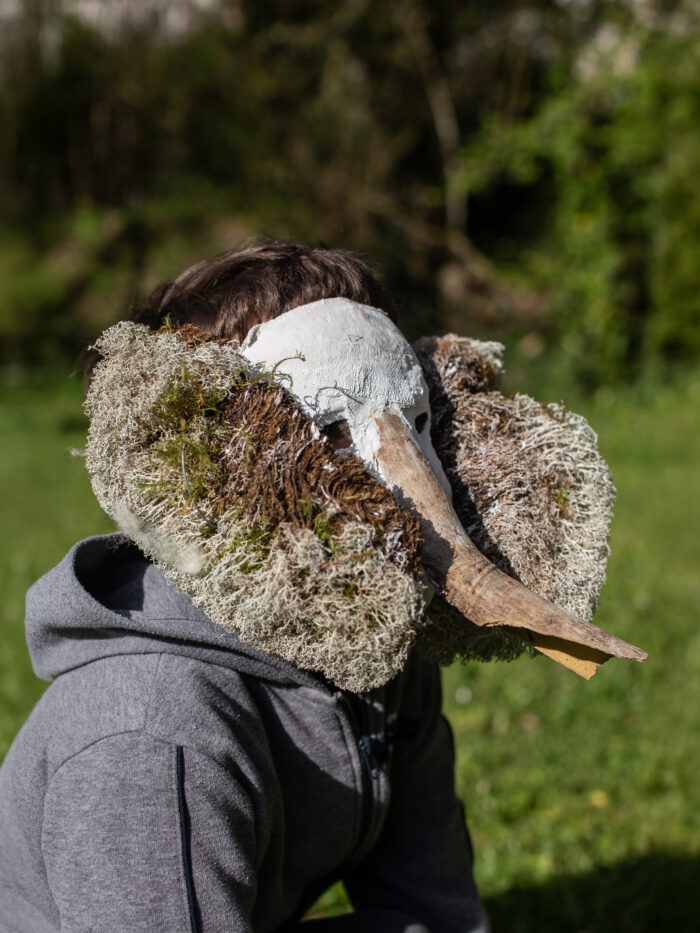 Sous la forme de sculptures à porter, nous avons construit des métamorphoses de nos corps d’humains, des sortes d’hybridations avec les autres règnes du vivant.